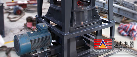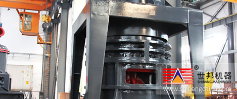 主機電(dian)動(dong)(dong)(dong)機通(tong)過(guo)減速(su)器帶(dai)動(dong)(dong)(dong)主軸(zhou)及(ji)各層(ceng)轉(zhuan)(zhuan)(zhuan)(zhuan)盤旋(xuan)轉(zhuan)(zhuan)(zhuan)(zhuan),轉(zhuan)(zhuan)(zhuan)(zhuan)盤通(tong)過(guo)柱銷帶(dai)動(dong)(dong)(dong)幾十個環(huan)輥在磨環(huan)滾(gun)(gun)(gun)道(dao)內(nei)滾(gun)(gun)(gun)動(dong)(dong)(dong)并(bing)(bing)旋(xuan)轉(zhuan)(zhuan)(zhuan)(zhuan)。大塊物料(liao)(liao)(liao)(liao)經(jing)錘(chui)式破碎(sui)機破碎(sui)成(cheng)小顆粒后(hou)由提升(sheng)機送(song)入儲料(liao)(liao)(liao)(liao)倉,電(dian)磁振動(dong)(dong)(dong)給料(liao)(liao)(liao)(liao)機將物料(liao)(liao)(liao)(liao)均勻的(de)送(song)到上轉(zhuan)(zhuan)(zhuan)(zhuan)盤的(de)中部(bu),物料(liao)(liao)(liao)(liao)在離心(xin)力(li)的(de)作(zuo)用下散向圓(yuan)周邊,并(bing)(bing)落(luo)入磨環(huan)的(de)滾(gun)(gun)(gun)道(dao)內(nei)被環(huan)輥沖壓(ya)、滾(gun)(gun)(gun)碾、研磨而粉(fen)碎(sui),物料(liao)(liao)(liao)(liao)經(jing)層(ceng)粉(fen)碎(sui)后(hou)落(luo)入層(ceng)及(ji)第(di)三層(ceng),高壓(ya)離心(xin)風(feng)機的(de)抽吸作(zuo)用將外部(bu)空氣(qi)吸入機內(nei),并(bing)(bing)經(jing)過(guo)第(di)三層(ceng)粉(fen)碎(sui)后(hou)的(de)粗粉(fen)帶(dai)入選粉(fen)機內(nei)。選粉(fen)機內(nei)旋(xuan)轉(zhuan)(zhuan)(zhuan)(zhuan)的(de)渦輪使粗顆粒物料(liao)(liao)(liao)(liao)回落(luo)重磨,細粉(fen)則隨氣(qi)流進入旋(xuan)風(feng)集(ji)粉(fen)器并(bing)(bing)由其下部(bu)的(de)卸料(liao)(liao)(liao)(liao)閥排出即(ji)為成(cheng)品,而帶(dai)有少量細粉(fen)塵(chen)的(de)氣(qi)流則經(jing)過(guo)脈(mo)沖除塵(chen)器凈化后(hou)通(tong)過(guo)風(feng)機和消聲器排出。